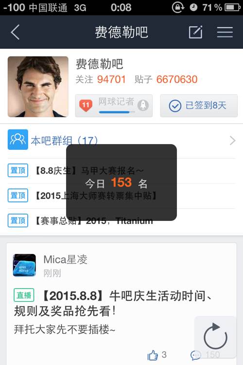 「世界唯一的男神」井冰 截个2015080808的图。