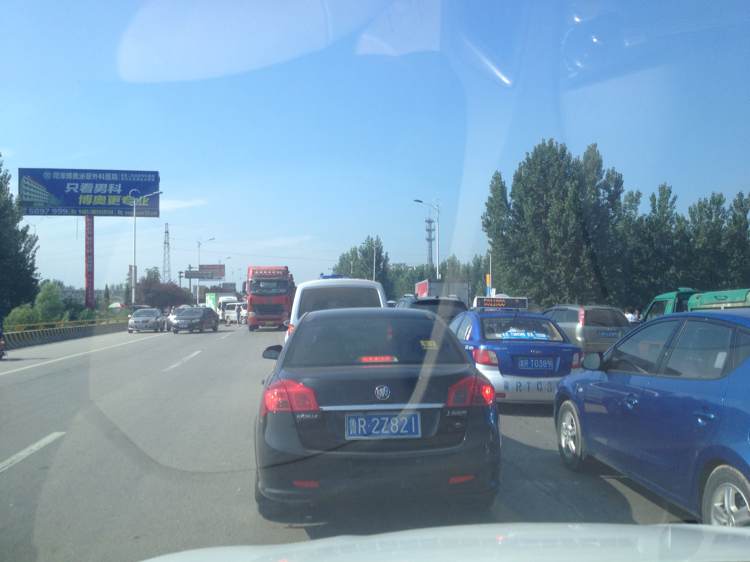 菏商路万福河桥上堵车中,有知道