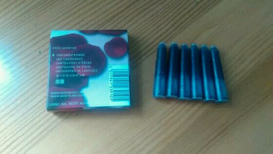 6、细节描述:(1)万宝龙2005年限量Jet'amine墨胆,一盒六只,全新未使用;(2)一切均完好无损。(3)欧标墨胆,某些笔不适配,请谨慎出价。目前试过西华塔格没有问题,万宝龙自己的笔也可以。派克不可以。想用墨水也可以注射器抽取。保留选择买家权利。