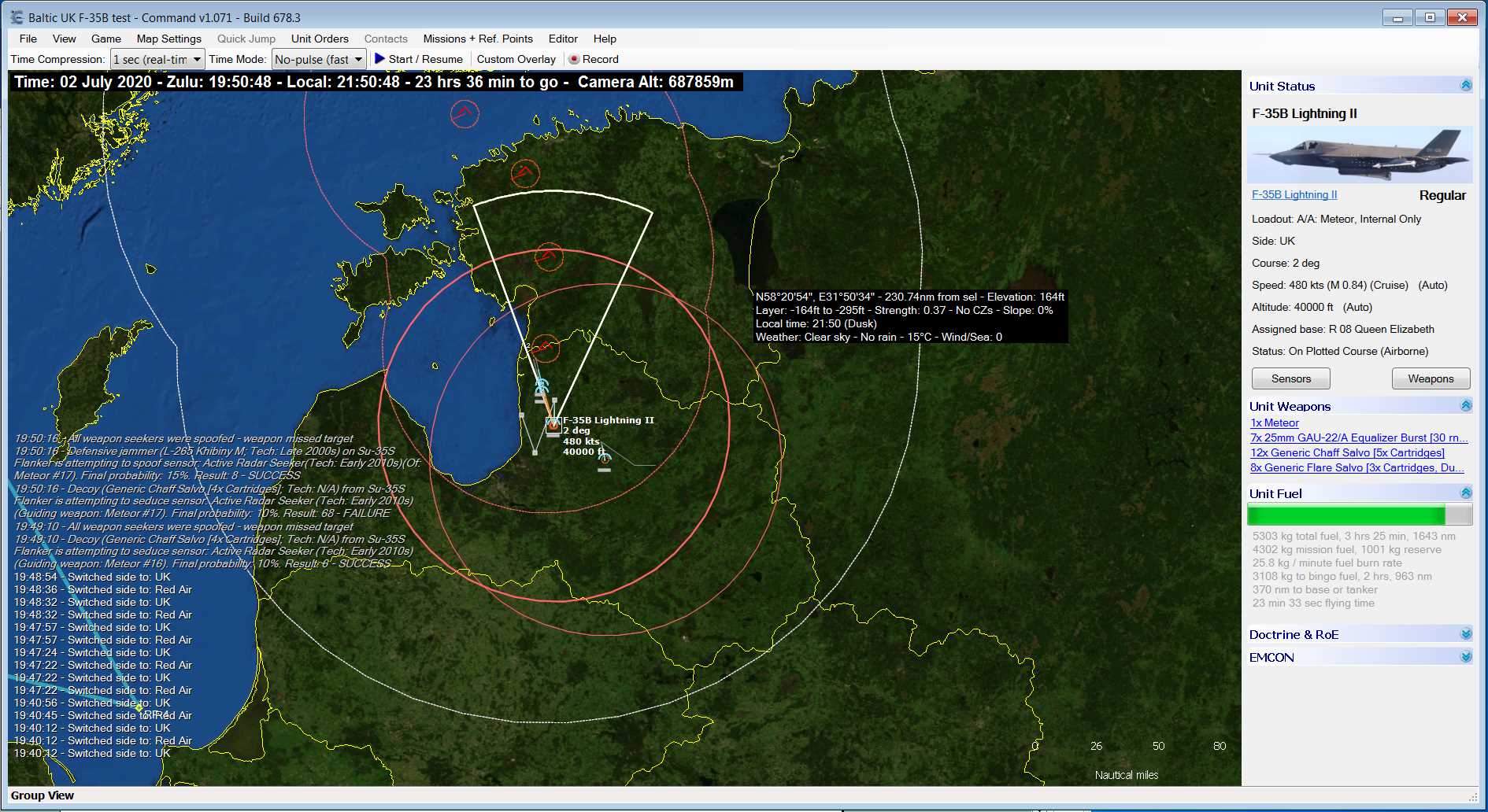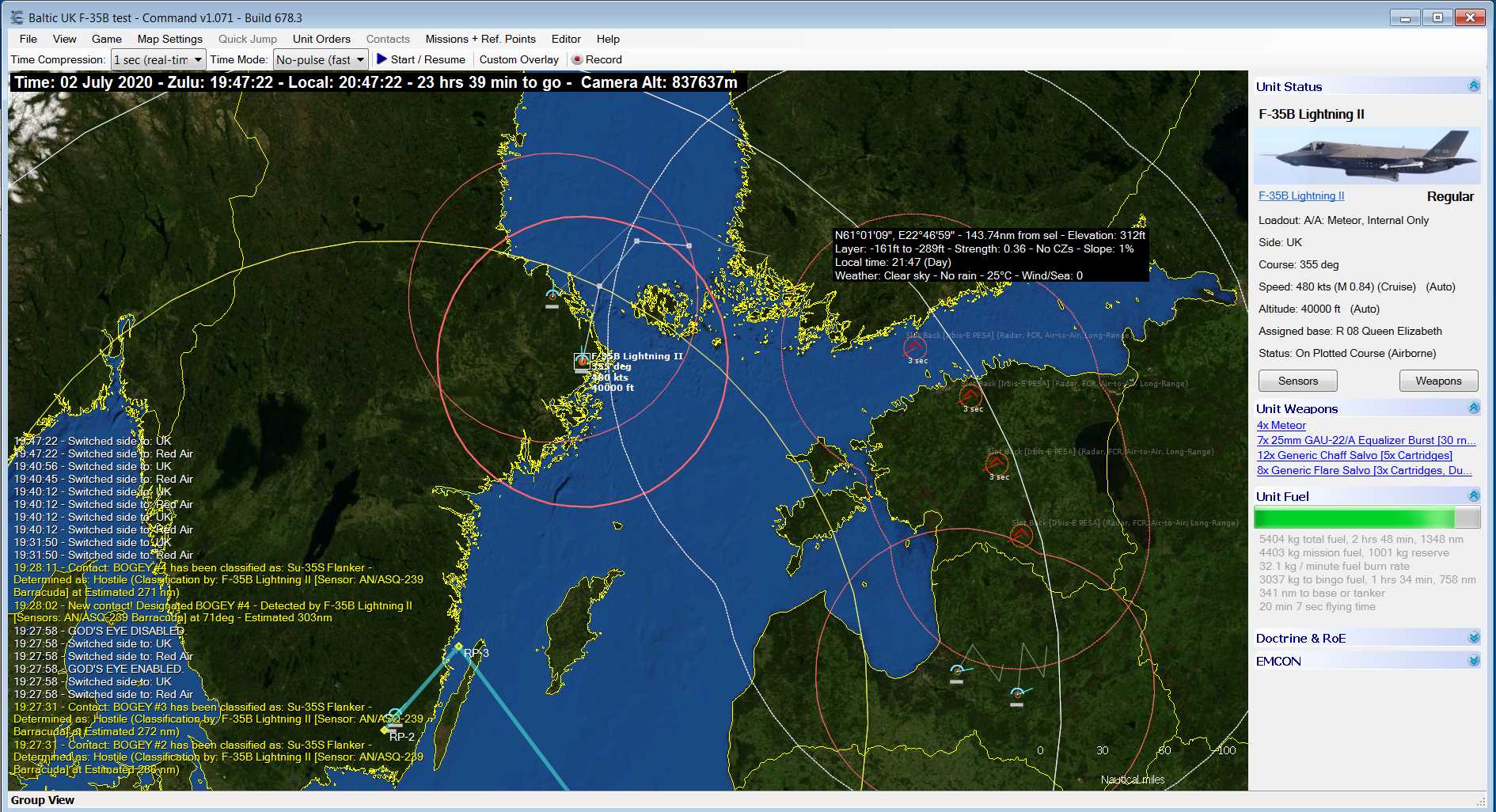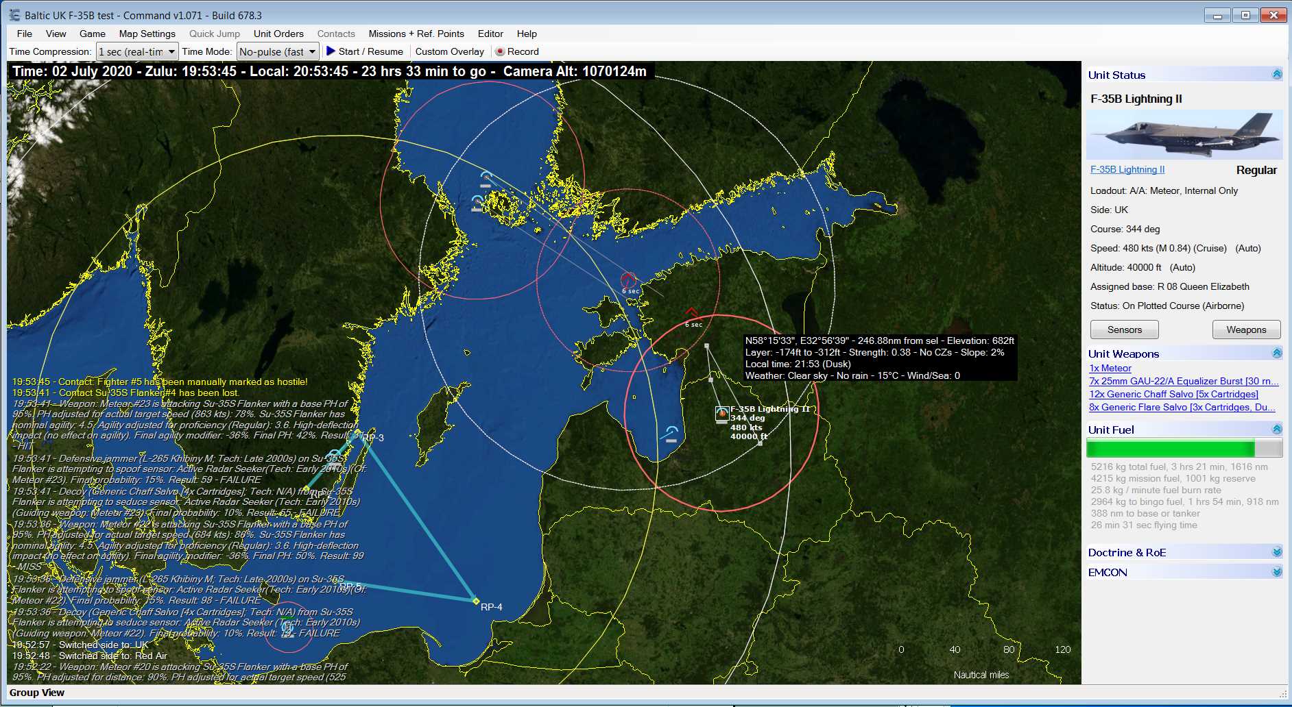 为了检验F-35是否真象其厂家所吹嘘的那么强大,还是象批评者说的那样已经落后,英国皇家航空协会最近独立地对F-35的空战性能进行了模拟,而其对手则是俄罗斯在役的最新战机苏35。这次模拟空战是用CMANO系统完成的。