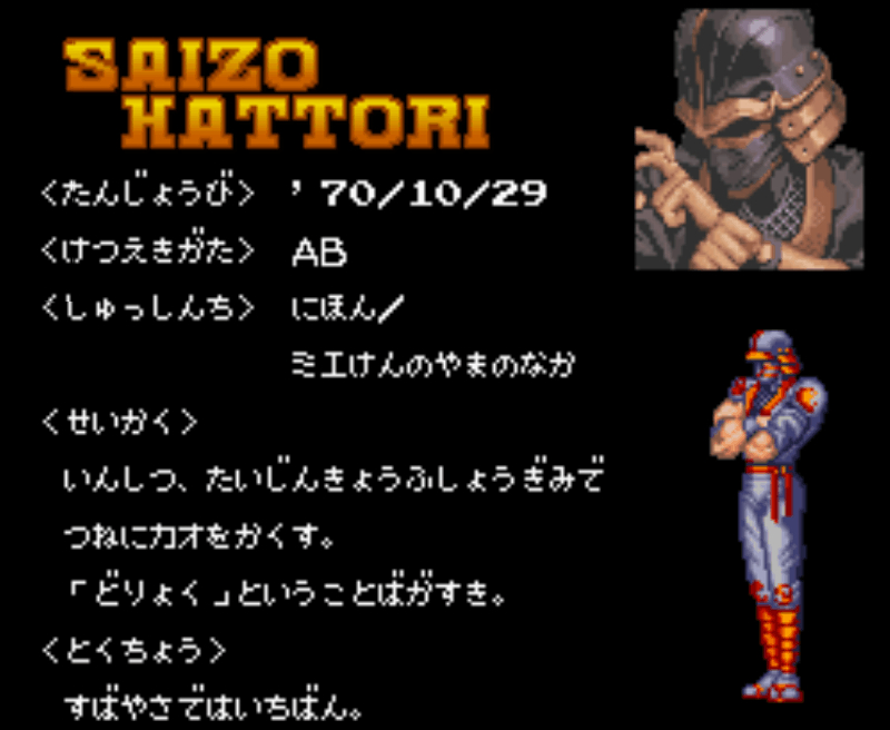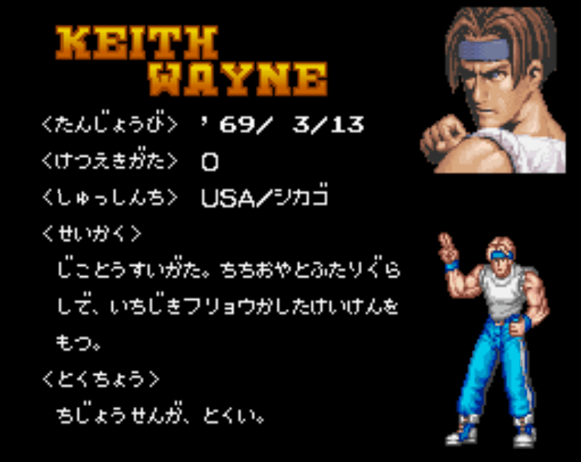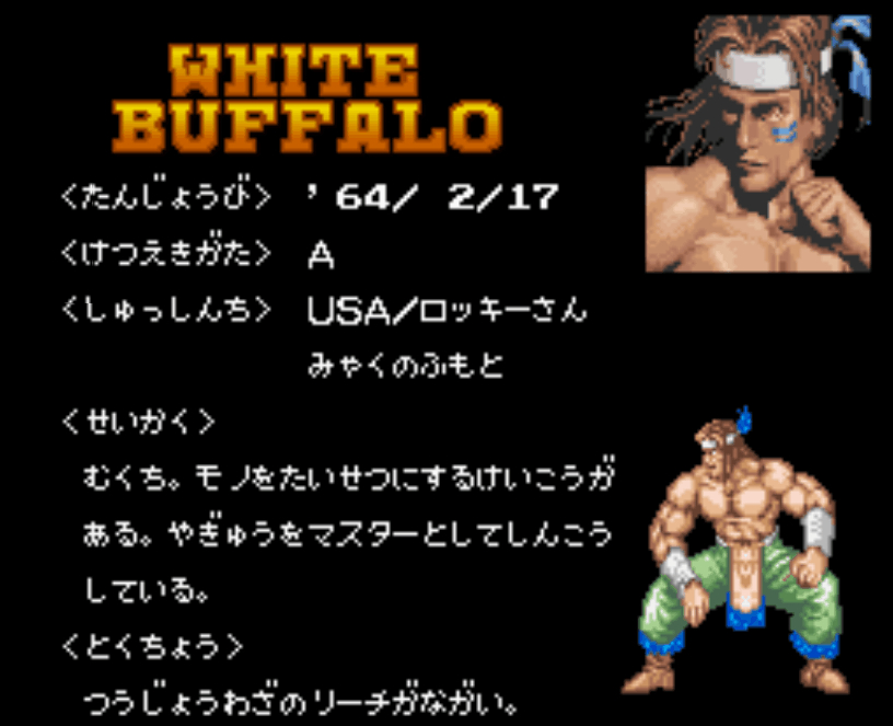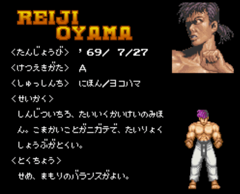 人物介绍。SFC版有出普通技动作,MD版无