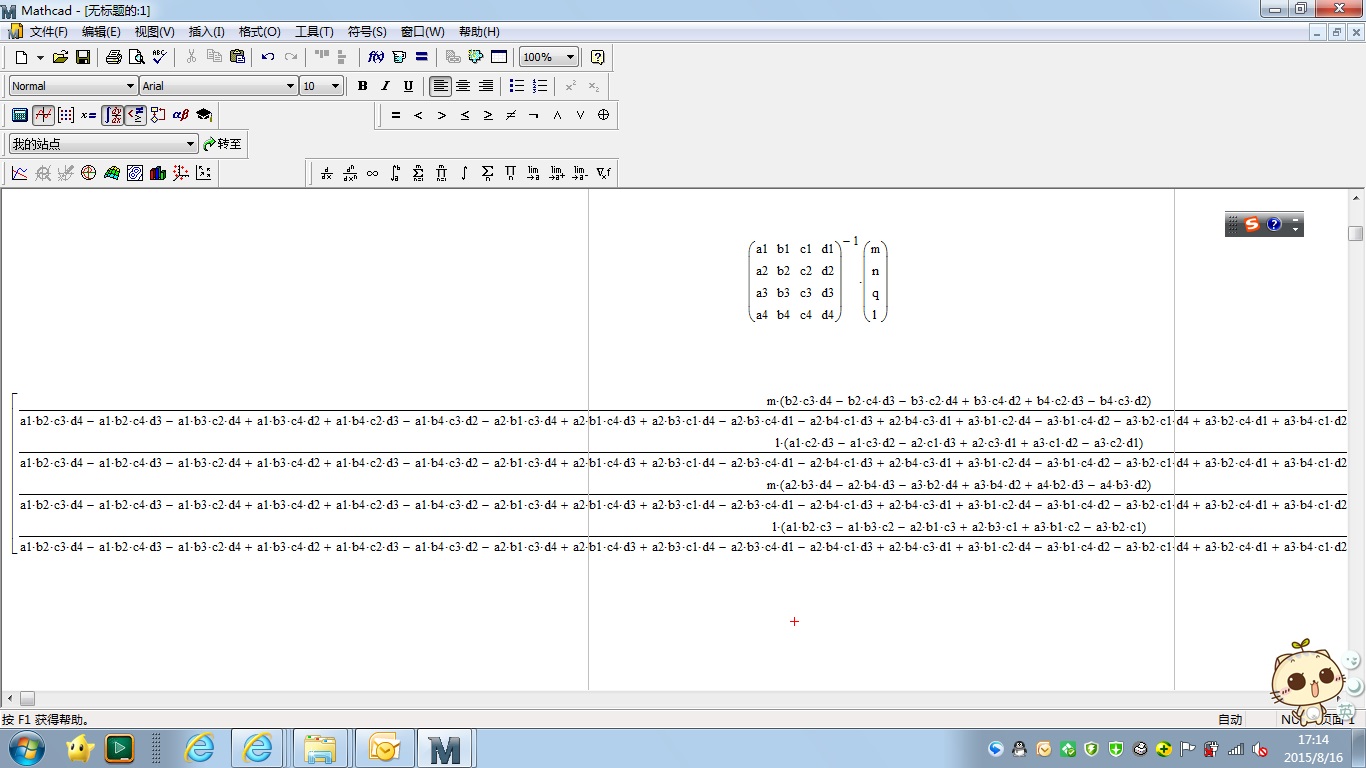wwwdongliting那个是正解,稍微变换一下,用MC15也可以秒解,但这个秒解不是用“→”的形式,而是用“符号”菜单里的“求值”中的“符号”,快捷键是shift F9。