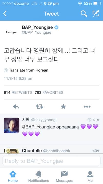 ┣B.A.P┫150811 图图┆永才更推一则对baby的想念和感谢