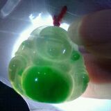 【翡翠描述】-种好水足,飘阳绿.大厚装.老坑光足.造型生动.雕工精湛.玉质细腻.有孔.佩戴独一无二!