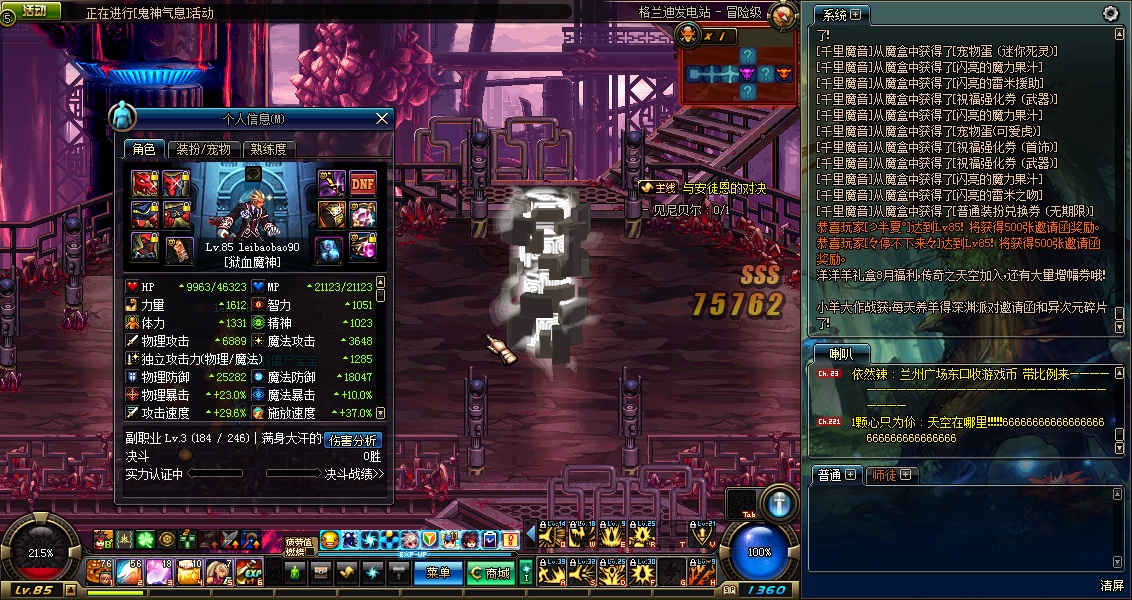 好久不玩的号,直升85,发现号里还有2500邀请函,听说直播会有人品。