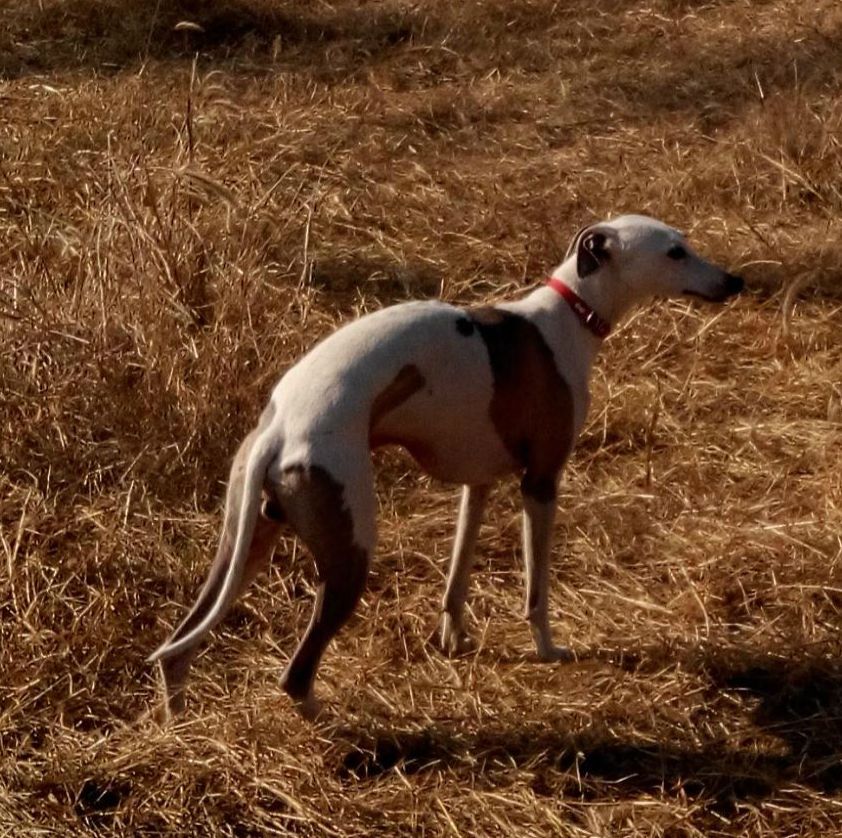 3.前侧身,也就是你在狗的正前方向左或者右偏移三十度到六十度之间为好。这样的照片基本上综合了前两种的效果。而且还可以看清尾巴。整体看会更具有流线型。大家可以参详韦小白的这张照片。