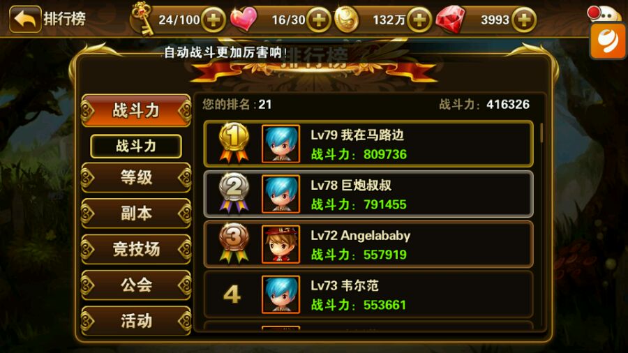 :没说炮叔开挂,我被第3名的那位大兄弟嘲讽我开挂呢,他战力排第三我战力排20 伤害比他高~ 只能说挂机和手动的区别