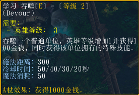 通过吞噬普通单位,可以获得100金币及该单位的技能。A帐后吞噬金钱增加到1000。