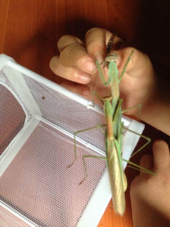 成功,一会能看见母螳螂排出精包
