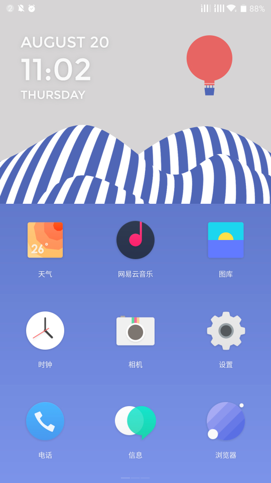 3.如果氢os界面的纯色背景部分是一整块纯色我会觉得这个ui更有档次,但这纯色背景是按颜色从深到浅的阶梯状,看起来背景不统一,很乱,还会让人有种背景纯色图片质量不行色阶断裂的错觉,建议改成整块纯色背景,如果这样设计是做区域分隔用,事实上5.5寸屏幕一排3个图标,图标间距已经够大了,完全不用分隔。