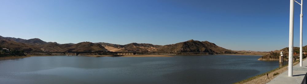 站在水库坝上,这是山洼中绿洲,清澈的湖水,别有一番情与意吧