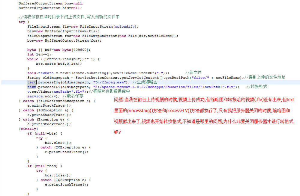java上传视频文件生成缩略图和转格式的问题