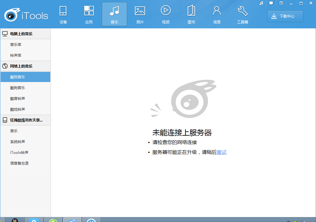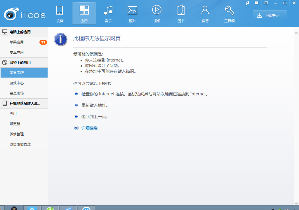 iTunes这边有提示,你的网络配置检查一下。网络坏境不稳定导致的