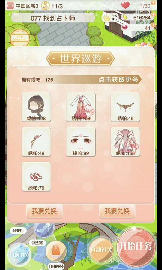 换了3个需要绣帕多的部件,也是一关一关刷