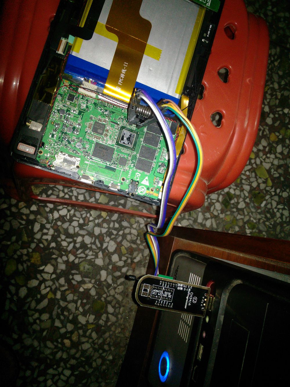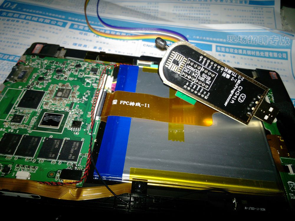 由于之前发的图片无显示,在此在发一贴。 本人的iWork8因为手贱,进bios打开了一些设置,以为能提升性能,无奈打开某些设置后,重启只亮白灯,屏幕与任何的显示,顿时真想剁手啊,恨啊,手贱手贱手贱,但是任何事情我们都要尝试,于是我很淡定的阅贴无数,都没有找到详细的方法,后来看到有一些大神说可以买编程器,本人之前也做过音响维修,于是果断买了编程器,今晚心里紧张的看电路接口,对好线,(之前查了看平板的bios芯片是25q64fwsig,然而这是一个低压版的,1.8伏吧,手头也没有电阻,我想这些芯片都有工作电压范围的,坏就坏了 ,)果断刷之,刷第一次说传输超时,后来再刷一次就好了,有不明的可以问我,不啰嗦了 直接上图。#(吐舌)