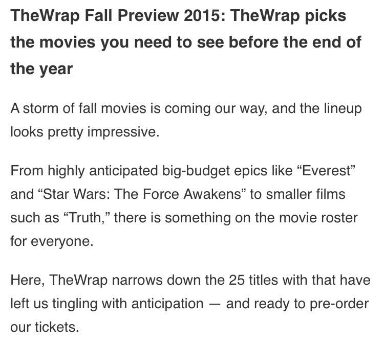 【The Wrap】今秋最想看的25部电影