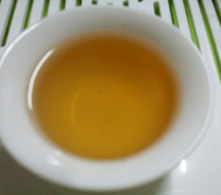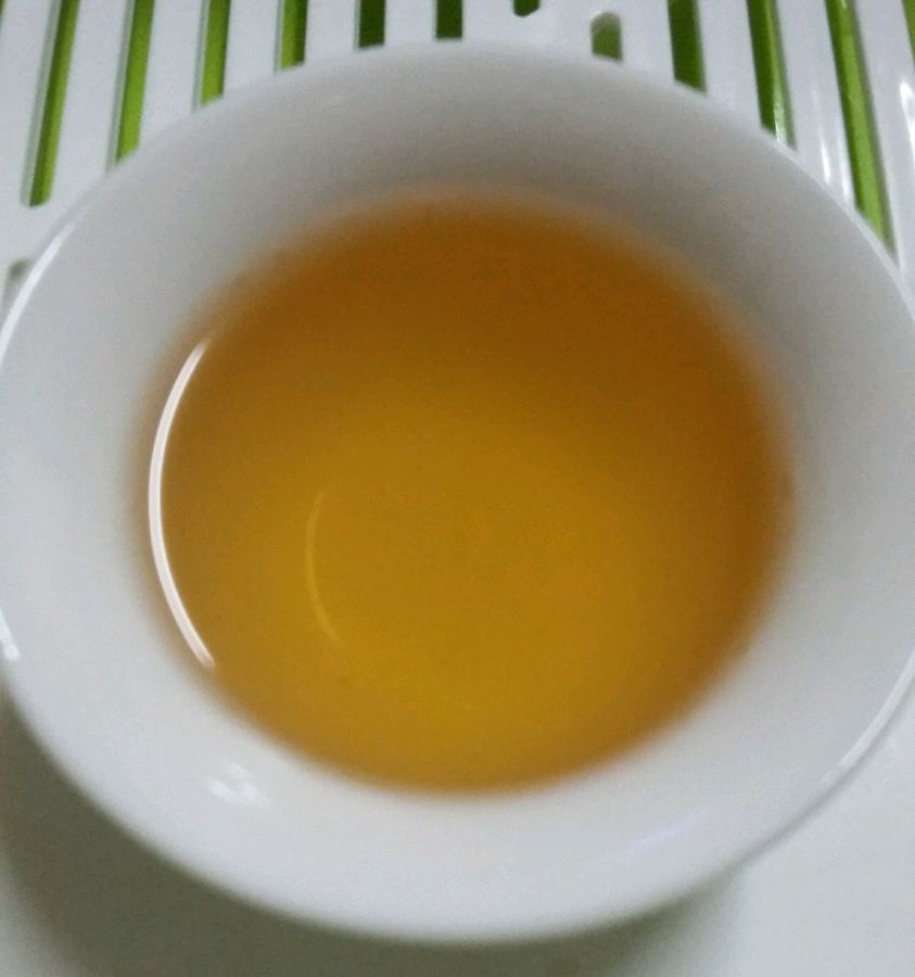 泡二,百度开水注入,亦2秒出汤,汤色似无改变,三种气味中之青气开始消失,入口还是有苦味,且好像有加强,但余甘显现,有点绿茶的口感。