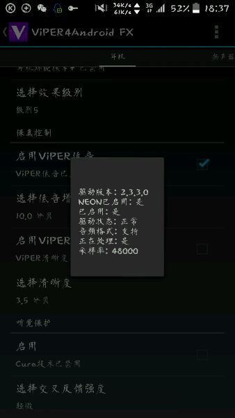 表示我也已经用上 不过好像不是全局 我只有开酷狗听歌他才工作 而且总感觉音质还下降了 不知楼主怎么样 求调试方法