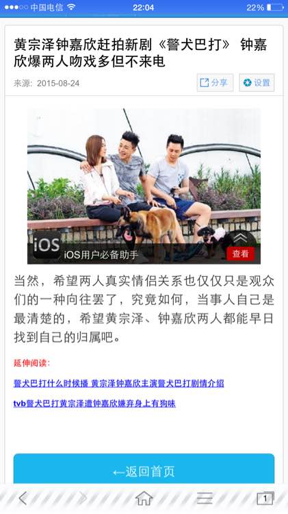 《警犬巴打》已经是两人第三次是饰演情侣了,但是钟嘉欣却强调绝不会过电,虽则吻戏很多,也不会吻出真感情来的,两人太老友了,完全没feel!