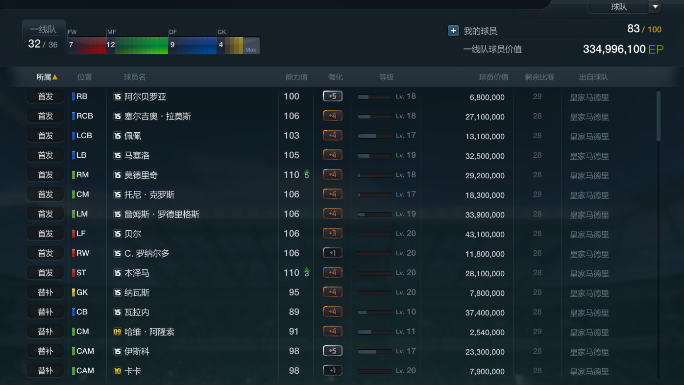 我有一亿阵容 一个皇马套 还有很多巨星球员