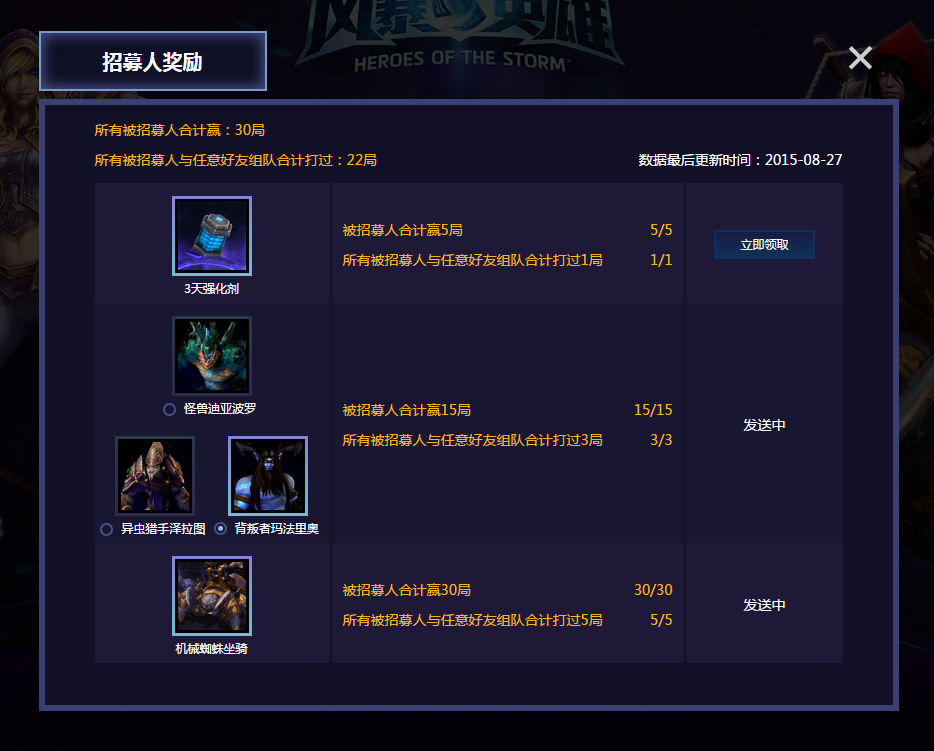 别急,数据更新很慢的。话说你选了哪两个英雄呢?