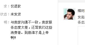 买家在申请退款的理由,说我骂他,还他们。难道他也想代表啊 哈哈