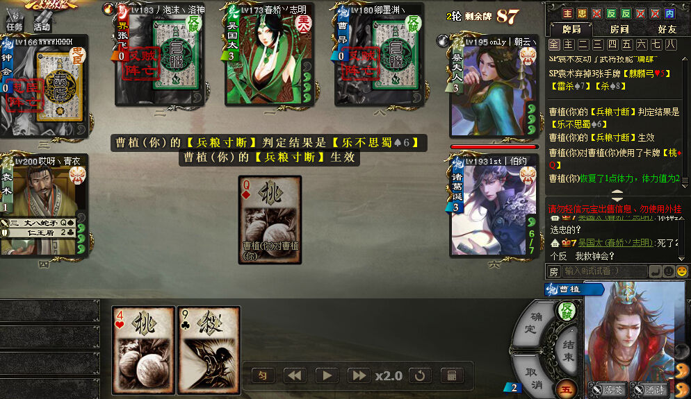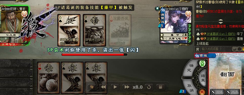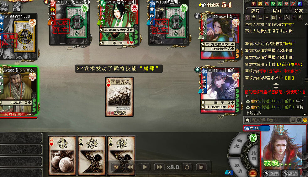 然后袁术来了,袁术2决斗,不终会,不张飞,不主公,决斗曹昂。