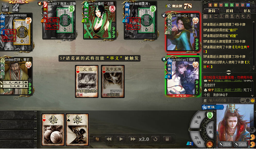 然后诸葛诞觉醒后一直弄蔡夫人,所以我标记了反。蔡夫人标记了内