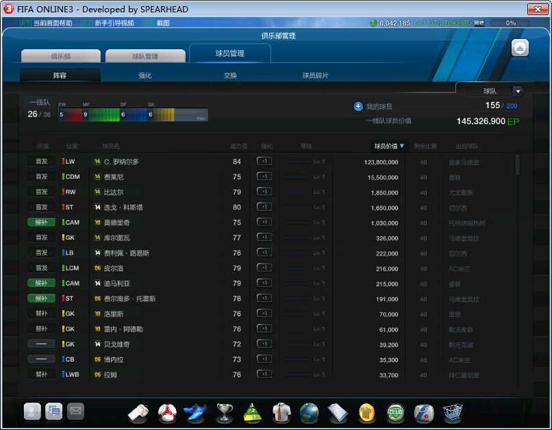 阵容价值1.45E,还有600W EP 只要200元。