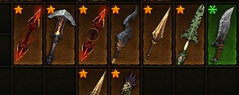 昨天有人带我刷了几百个死亡,刚才上线的时候我发现包里还有几把类似君王什么什么仗的武器,就拿来升级了