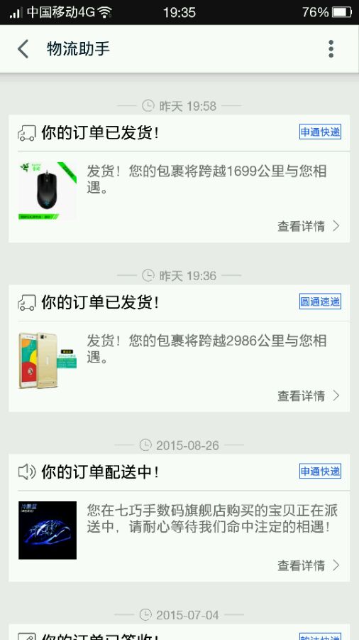 :我圆通的都签收了,申通的还没到哈尔滨,我晕
