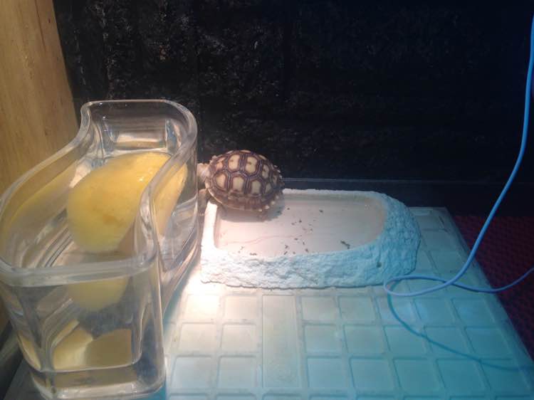 楼主不要放那个水盆, 小苏身上经常湿的会容易长疥疮。而且小苏不会自己喝水的。每天一次泡澡,湿度温度调好,一般是不缺水的。