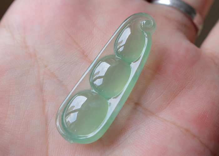 【描述】-茶绿四季豆,料子极老,结构致密,纯纯的,水足,起光,无纹裂!