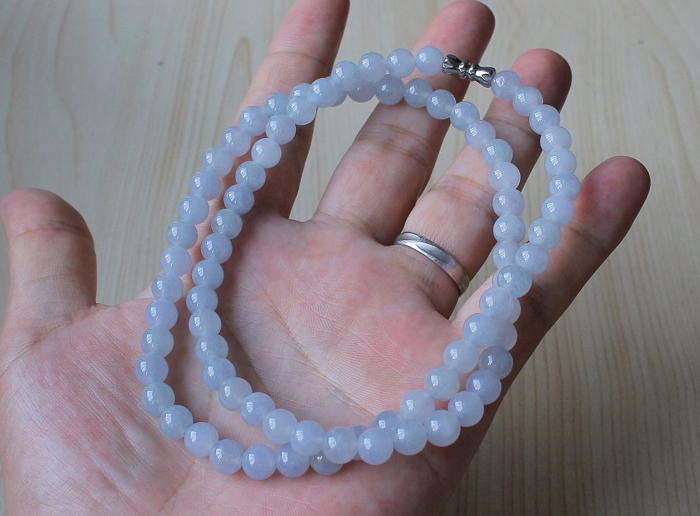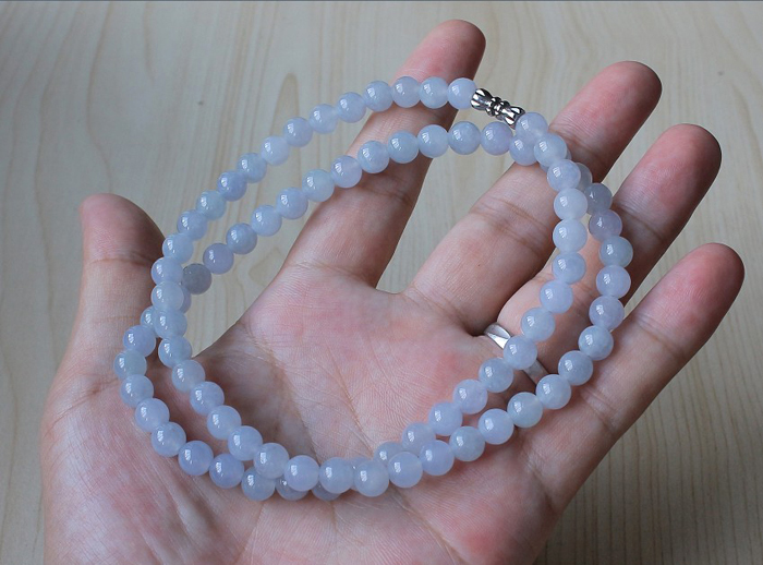 【描述】-冰糯紫罗兰圆珠项链,珠子水头好,这一串珠子比较完美纹裂很少,夏天配戴冰润清爽。