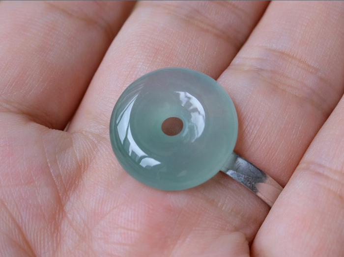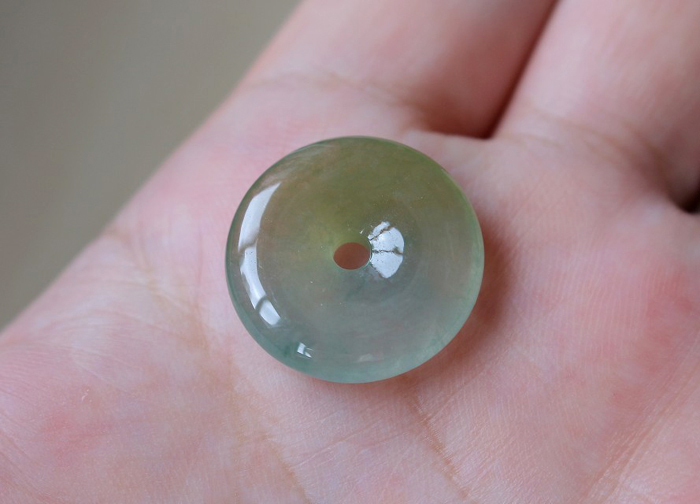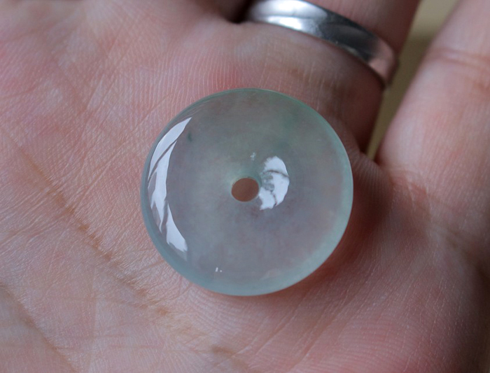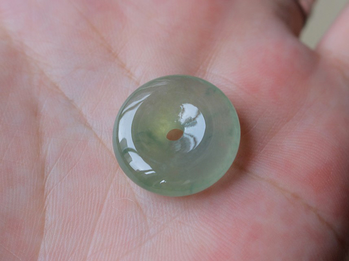 【描述】-浅绿平安扣,底色清爽,种质老,果冻感十足,整体饱满,水头非常好,无纹裂!