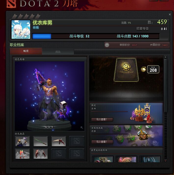 那么~给大家发一下他的资料吧~卤煮并不是技术宅,仅仅是他的刀塔2资料。。。