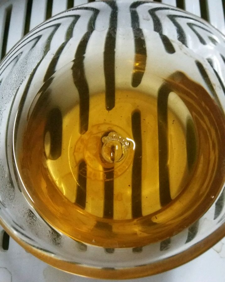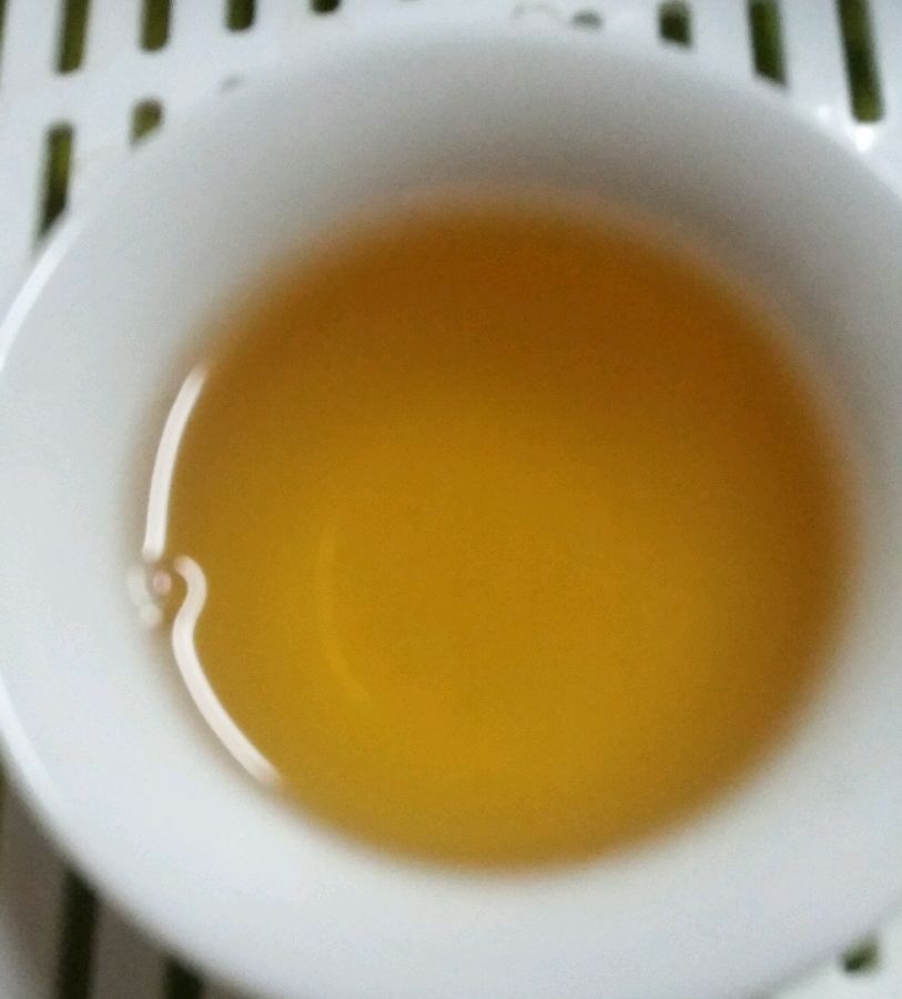 闻够壶身香气,20秒后泡三出汤,色比泡二略深,还是那种好闻的香气,甜味基本不变。对了,好像没回甘,只是两腮根觉得甜。