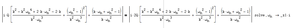 为了求解交点的横坐标值,我想用两条曲线来求解,曲线方程中k是参数,wn是自变量,两条曲线的区别在于Q不同,所以我让一条曲线的Q为2Q,但是却得到我不能理解的结果