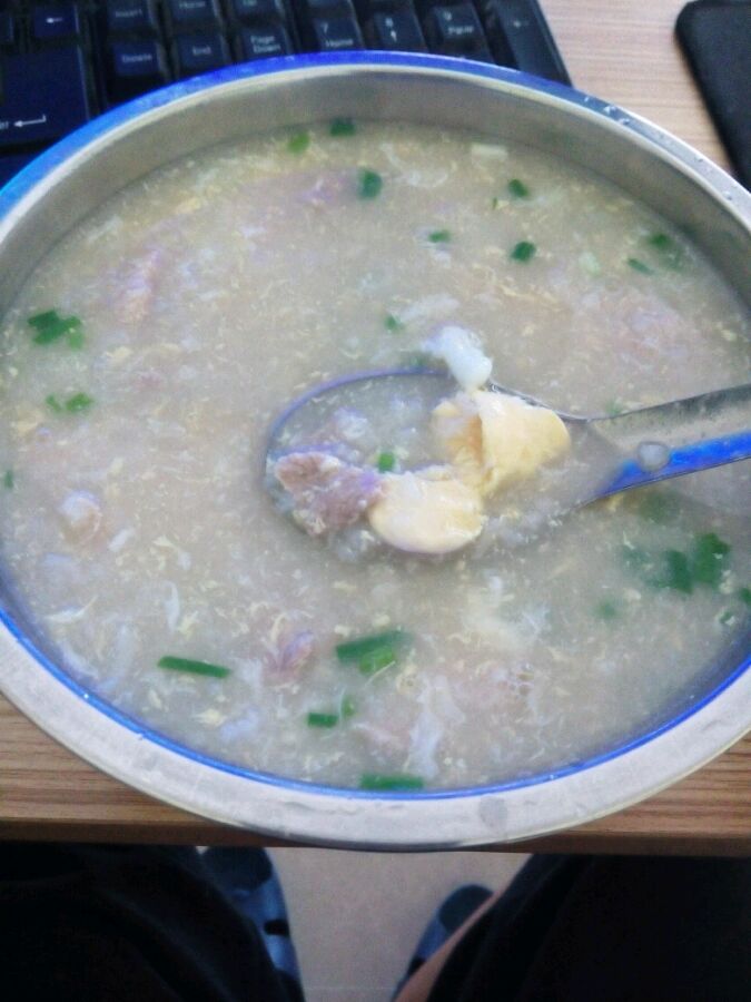好久没吃鸡蛋瘦肉粥了