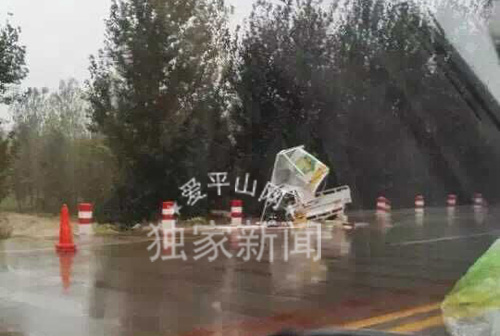 昨天在西岳村村西,往停车场拐弯的地方,一个半挂楼子抹了。