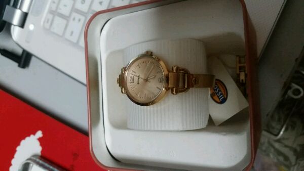 Fossil 玫瑰金女表,去年在王府井专卖店买的,一次都没带过,胳膊粗,戴出来没效果,压箱底了,收拾屋子翻出来了,希望转给喜欢它的人。当时是2000左右买的,发票找不到了。。喜欢的联系q 1015499670