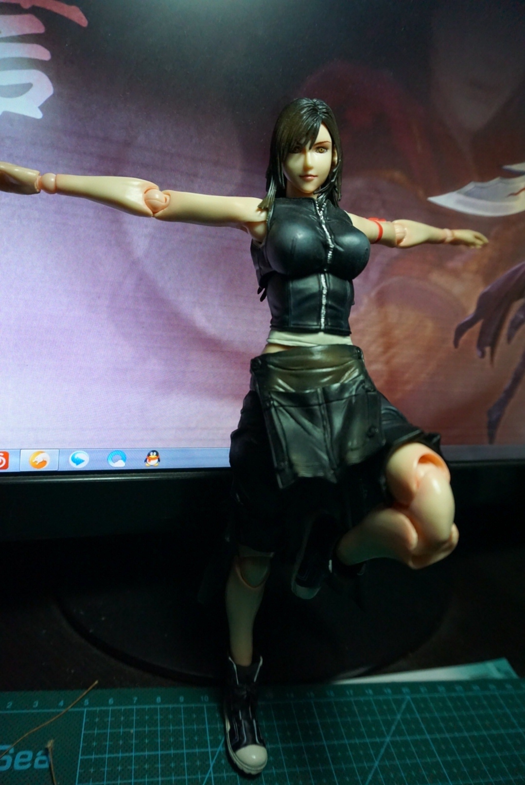 蒂法到手一周,经过几天的把玩,发现由于前裙摆的限制,大腿的可动性并不好,只能抬起45°左右,经过仔细研究,发现是可以手动改善的,并不麻烦。加上本人从小喜欢修理玩具,于是就开工了!