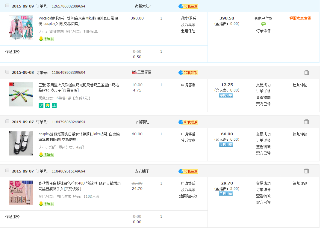 已经购买的东西,准备国庆节的时候出初音的另外一套校服(如果高中同学有空帮我化妆的话)