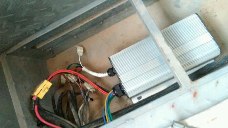 这个是因为车主过地下道,下得太大,水都淹到轮胎上边了,车主强行通过才导致控制器损坏,所以不予保修,自己掏钱更换,700元!