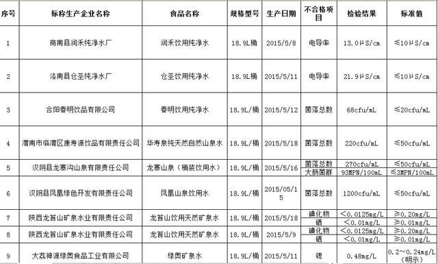 汉阴县龙寨沟山泉有限责任公司生产的龙寨山泉(桶装饮用水)菌落总数、大肠菌群超标,