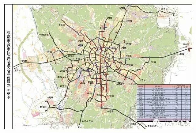 《成都地铁建设方案》提出,到2020年末,在380公里城市轨道交通项目基础上,再开通运营8号线一期,9号线一期,10号线二期,11号线一期,17号线一期等项目,共计120公里。全市城市轨道交通运营里程达到500公里。