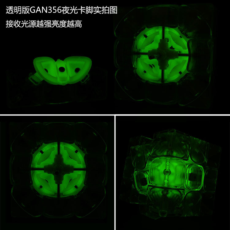 在打造手感的同时我们也兼顾了透明魔方的美感与收藏价值,此款GAN356也是首款内发光外透明的魔方,极具收藏价值。外观极致透明磨砂美感,卡脚需吸收光源才发光。