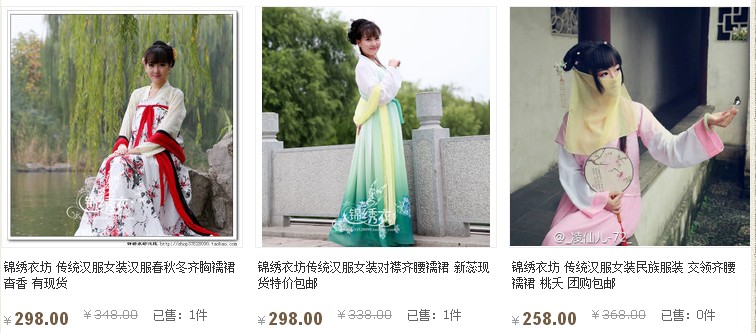 下面是参加活动的汉服价格预览
