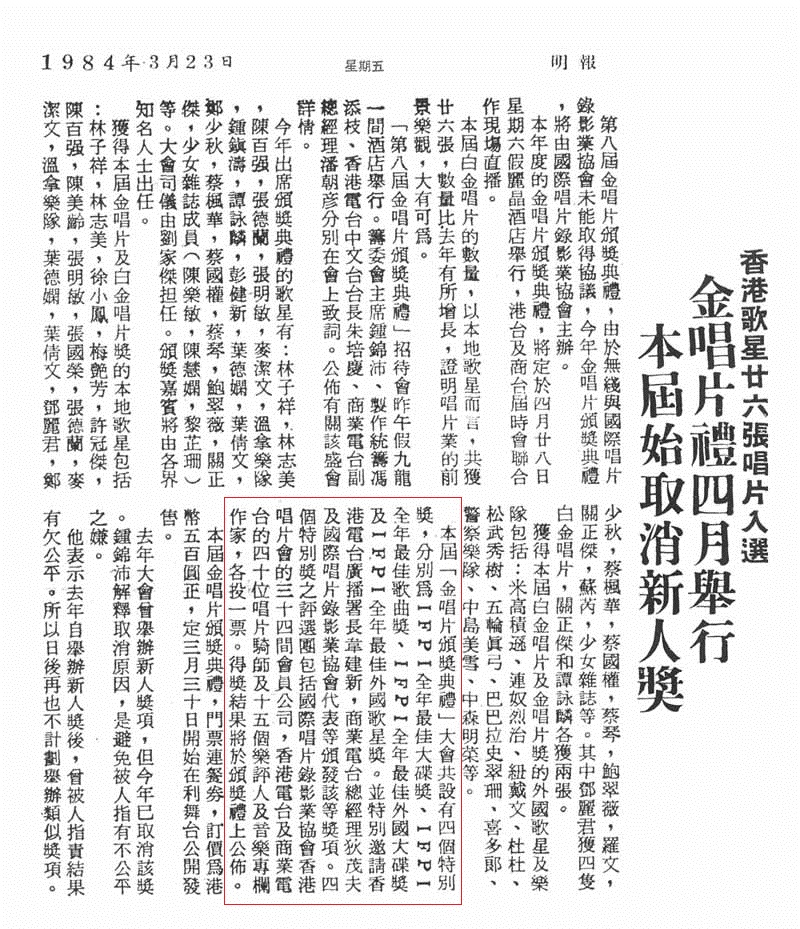 以下剪报谭迷也有的,以下剪报是八八年第十届金唱片颁奖典礼的得奖唱片列表(85-87年) 。