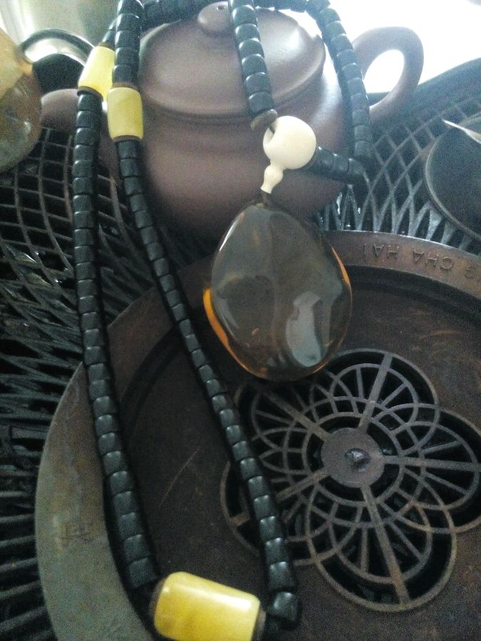 琥珀和佛头间,可以加一颗圆珠子。